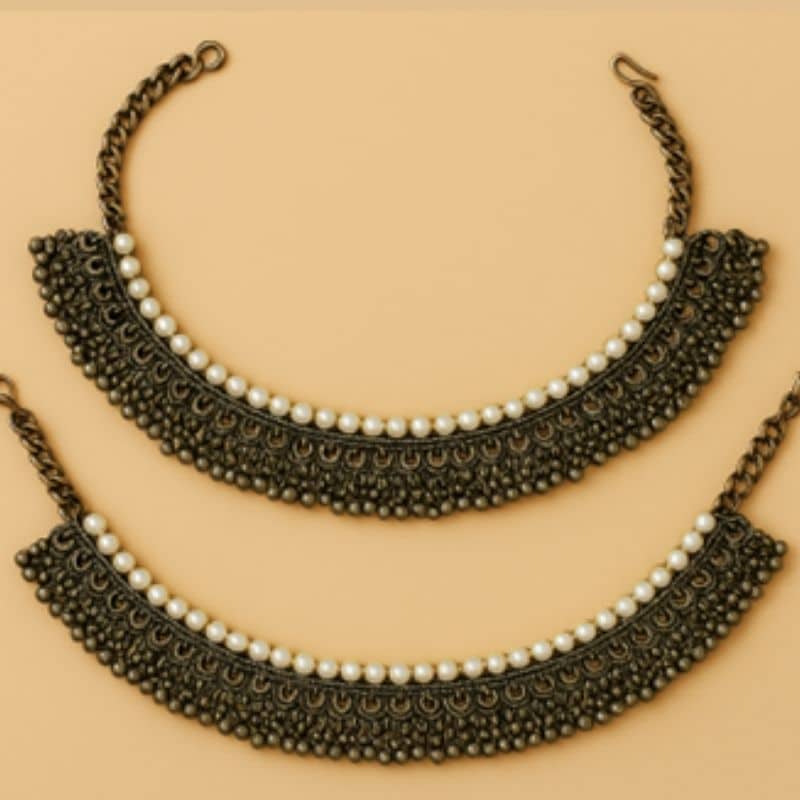 Description: Bridal anklets with ghungroo detailing and hook clasp