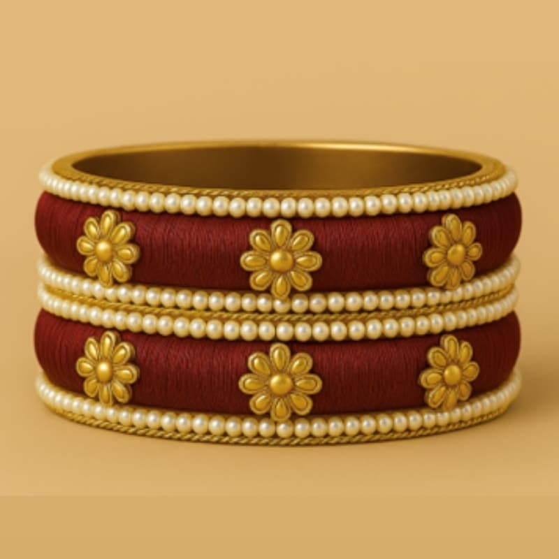 Description: Traditional enamel bangle with floral meenakari and embedded kundan